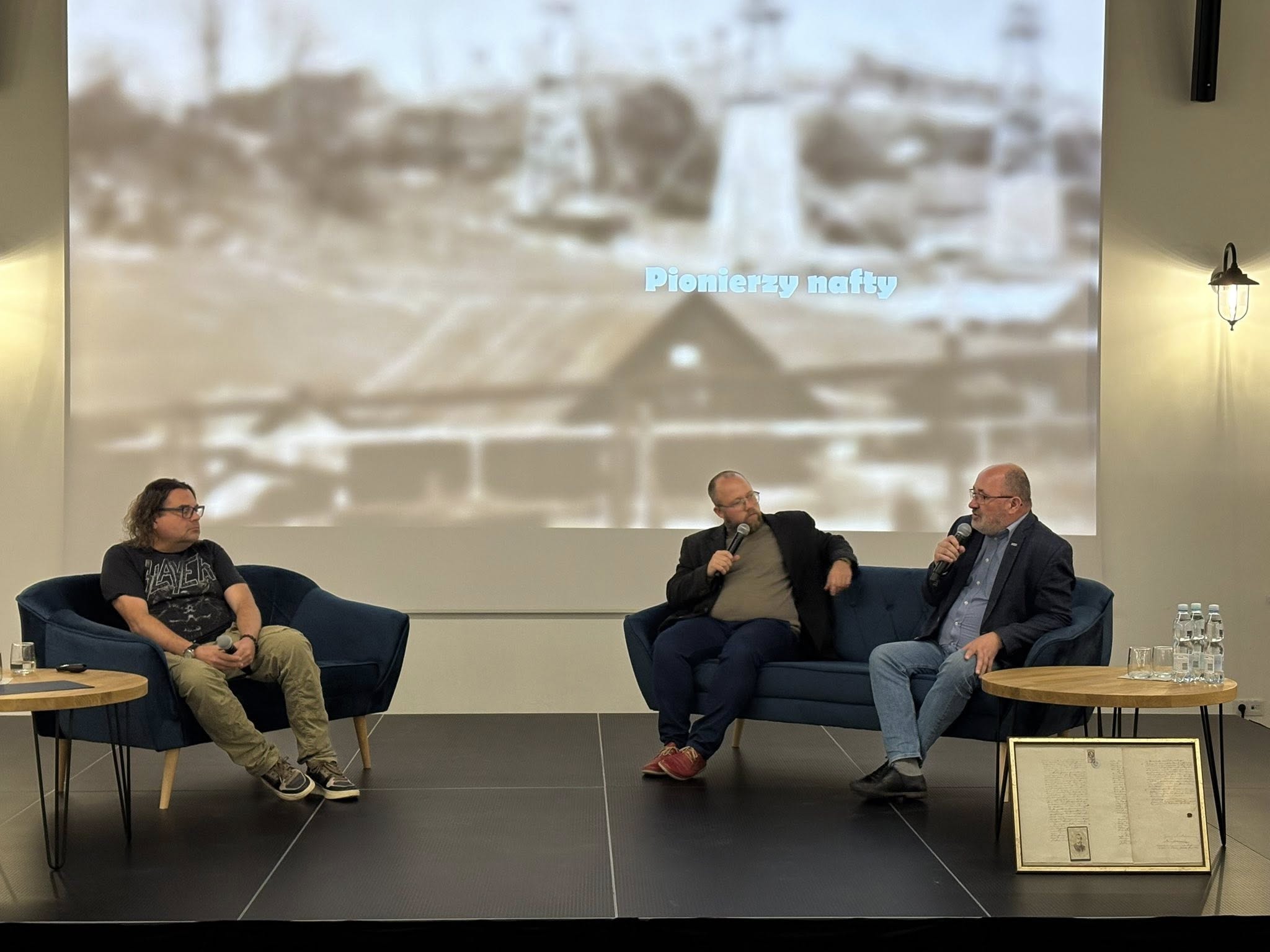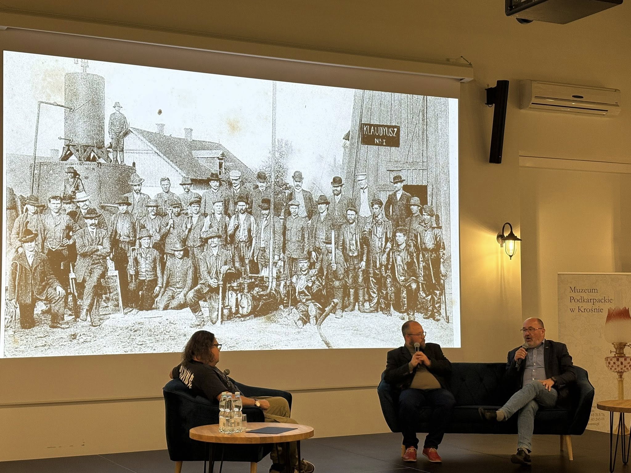 W dyskusji uczestniczyli: Bogdan Antoni Miszczak – producent filmu, Dariusz Pado- pasjonat i badacz historii galicyjskiego przemysłu naftowego oraz historyk Łukasz Bajda.