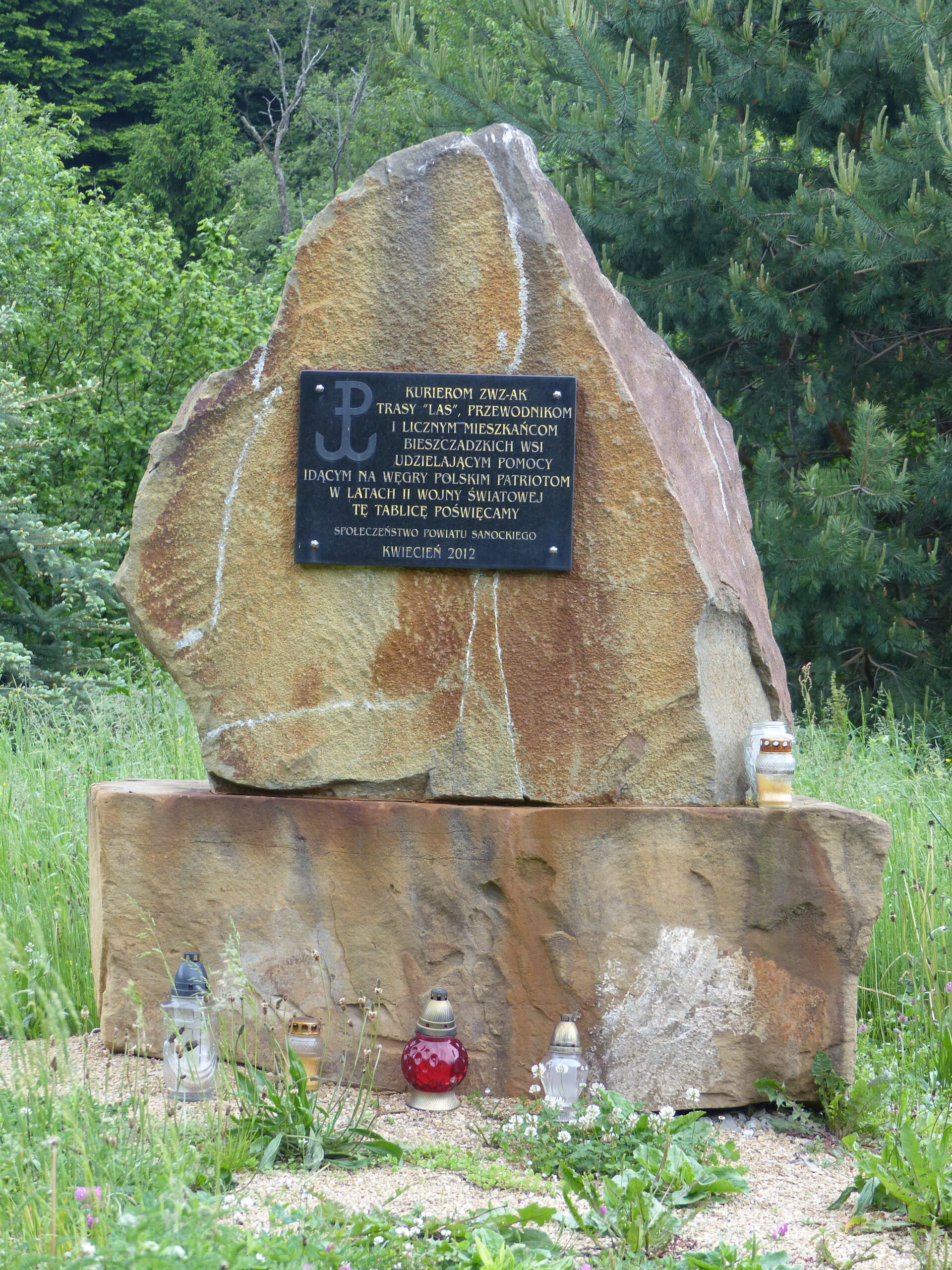 Jak już wspomniałem za organizację łączności kurierskiej w sanockim obwodzie ZWZ-AK był Aleksander Rybicki (1904–1983) twórca Muzeum Ziemi Sanockiej działającego przed II wojną światową oraz pierwszy dyrektor Muzeum Budownictwa Ludowego w Sanoku. W okresie od 22 lipca 1940 r. do marca 1942 r. był komendantem pododcinka „Bronisława”. Początkowo koordynował działania na terenie powiatu sanockiego, brzozowskiego i części przemyskiego. Później, w związku z aresztowaniem komendanta odcinka w Jaśle (kryptonim „Kazimiera”), w gestii Rybickiego znalazły się również powiaty krośnieński i jasielski. Rybicki zorganizował trasę kurierską o kryptonimie „Las”. Pierwszy z jej wariantów wiódł z Sanoka przez Kalnicę koło Zagórza do Żubraczego, gdzie w miejscowym dworze znajdował się punkt przerzutowy o kryptonimie „Doliwa”. Drugi wariant prowadził przez Łupków i Maniów również do Żubraczego. Tamtejszy punkt przerzutowy prowadziła Jadwiga Kociatkiewicz, córka Władysława Gedroycia, ostatniego właściciela tamtejszego majątku. W Maniowie i Kalnicy zorganizowane były natomiast punkty kontaktowe u tamtejszych gajowych. Przejścia na trasie „Las” organizowano regularnie dwa razy w miesiącu. Kurierzy przenosili systemem sztafetowym pocztę, pieniądze, a także broń.